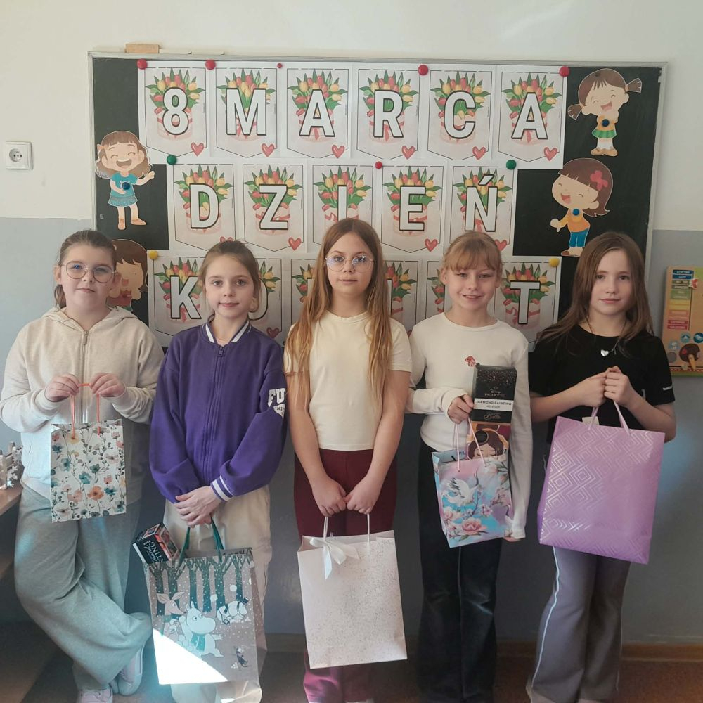 Dzień Kobiet w naszej szkole Były życzenia, kwiaty, słodkości i drobne upominki od kolegów. Każda dziewczynka poczuła się wyjątkowo.