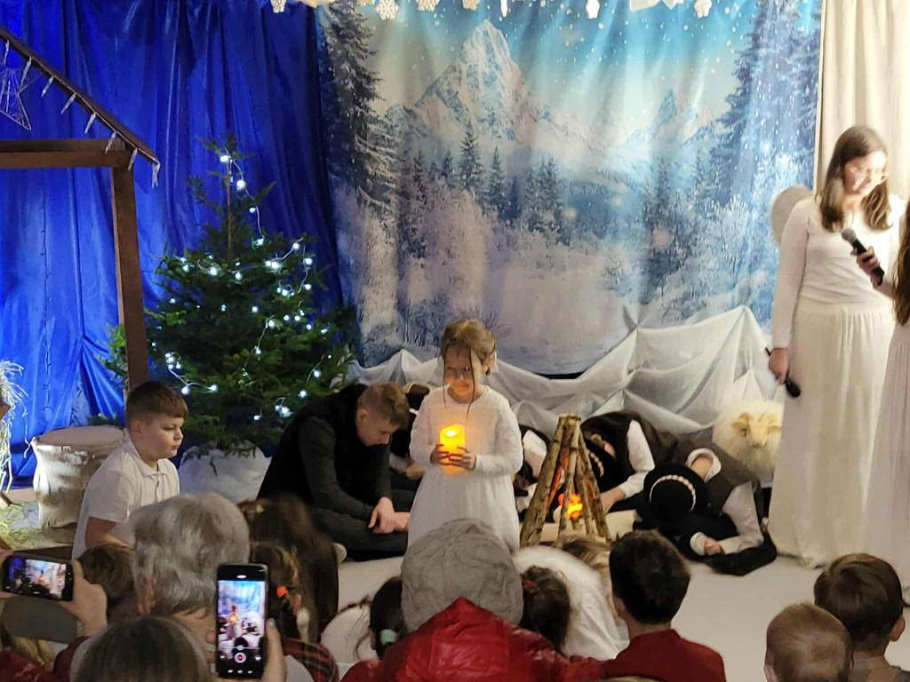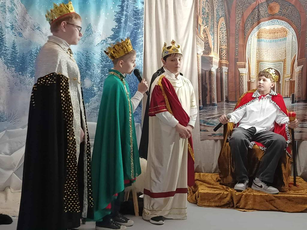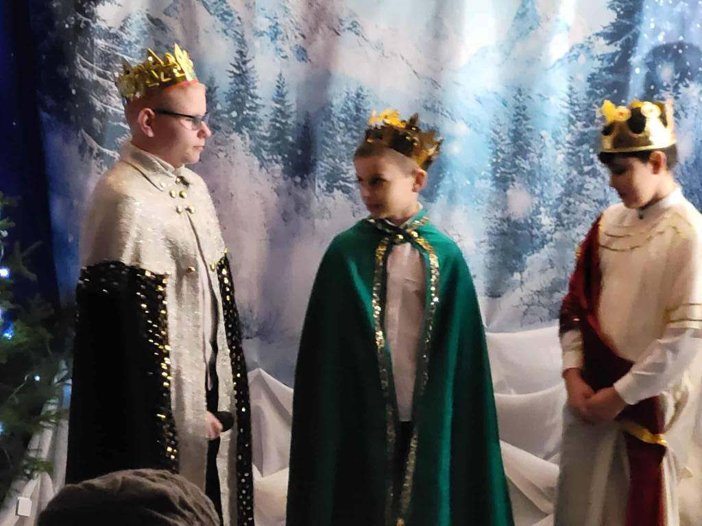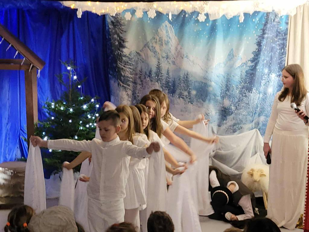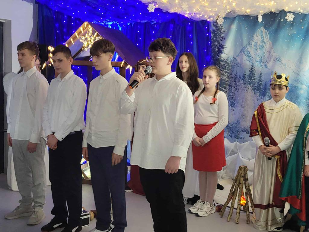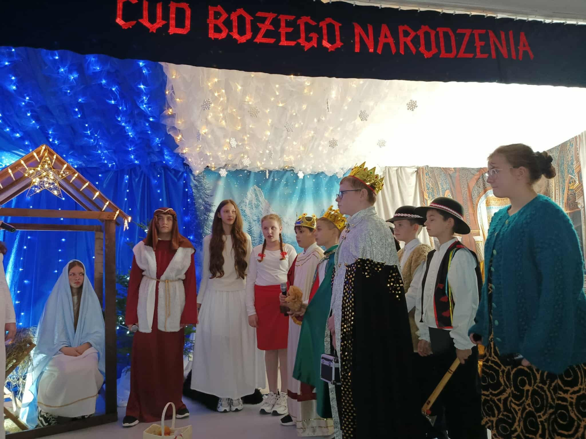 „ Cud Bożego Narodzenia” pod takim hasłem 11 grudnia 2025 roku odbyły się w naszej szkole Jasełka Bożonarodzeniowe. Do szkoły licznie przybyli zaproszeni goście oraz rodzice uczniów. Uczniowie w specjalnie przygotowanych na tę okazję strojach oraz w pięknej scenografii przedstawili sceny narodzin Chrystusa. Był święty Józef, Maryja, królowie, pasterze, Herod, Herodowa, diabeł oraz śmierć . Zgromadzona publiczność po raz kolejny mogła przeżyć historię narodzin Jezusa Chrystusa, którą nasi uczniowie zaprezentowali z wielkim zaangażowaniem i wrażliwością. Przesłanie Jasełek było bardzo wymowne: w dzisiejszych czasach, tak samo jak ponad 2000 lat temu, Jezus puka do drzwi i szukał schronienia w niejednym sercu człowieka, tylko od nas zależy, czy to zauważymy i przyjmiemy Go do siebie. Jasełka wprowadziły wszystkich w świąteczny nastrój,