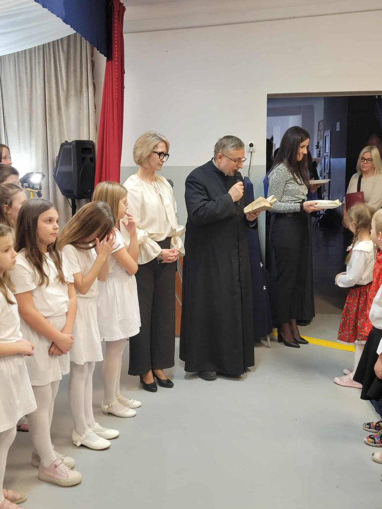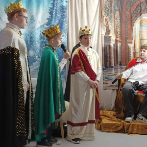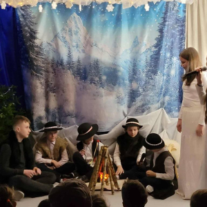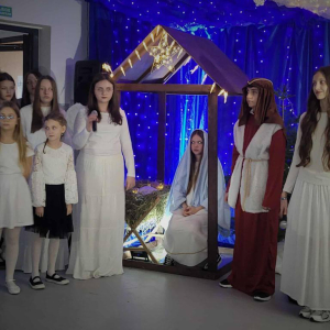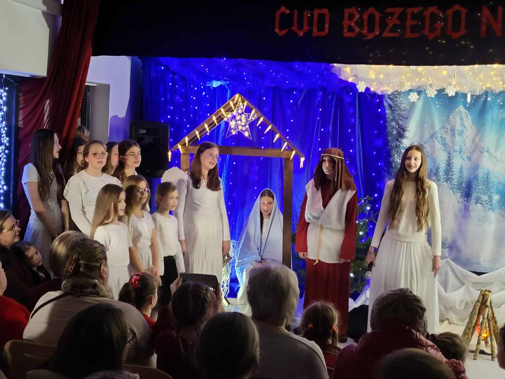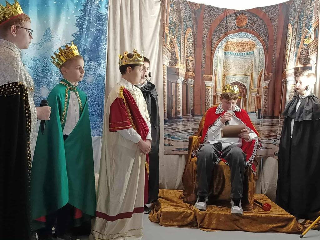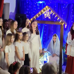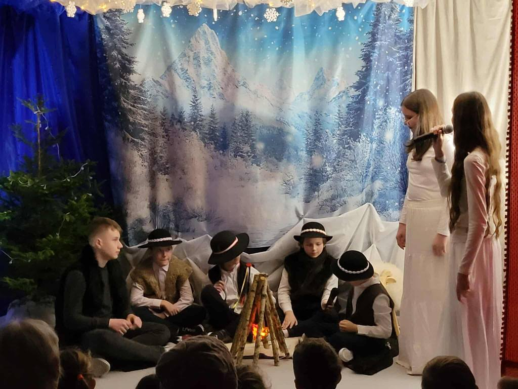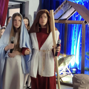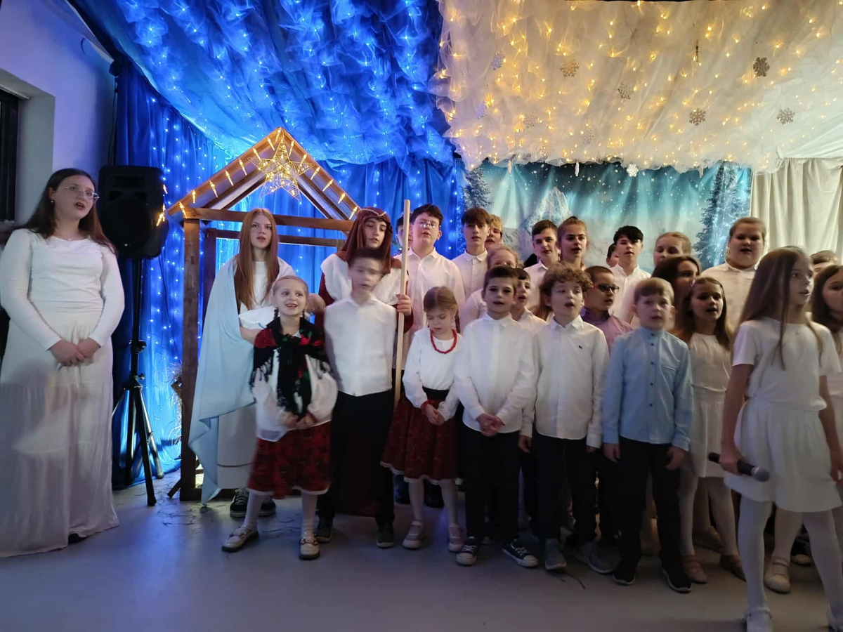 „ Cud Bożego Narodzenia” pod takim hasłem 11 grudnia 2025 roku odbyły się w naszej szkole Jasełka Bożonarodzeniowe. Do szkoły licznie przybyli zaproszeni goście oraz rodzice uczniów. Uczniowie w specjalnie przygotowanych na tę okazję strojach oraz w pięknej scenografii przedstawili sceny narodzin Chrystusa. Był święty Józef, Maryja, królowie, pasterze, Herod, Herodowa, diabeł oraz śmierć . Zgromadzona publiczność po raz kolejny mogła przeżyć historię narodzin Jezusa Chrystusa, którą nasi uczniowie zaprezentowali z wielkim zaangażowaniem i wrażliwością. Przesłanie Jasełek było bardzo wymowne: w dzisiejszych czasach, tak samo jak ponad 2000 lat temu, Jezus puka do drzwi i szukał schronienia w niejednym sercu człowieka, tylko od nas zależy, czy to zauważymy i przyjmiemy Go do siebie. Jasełka wprowadziły wszystkich w świąteczny nastrój,