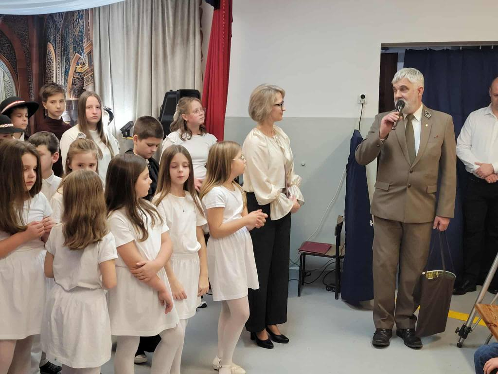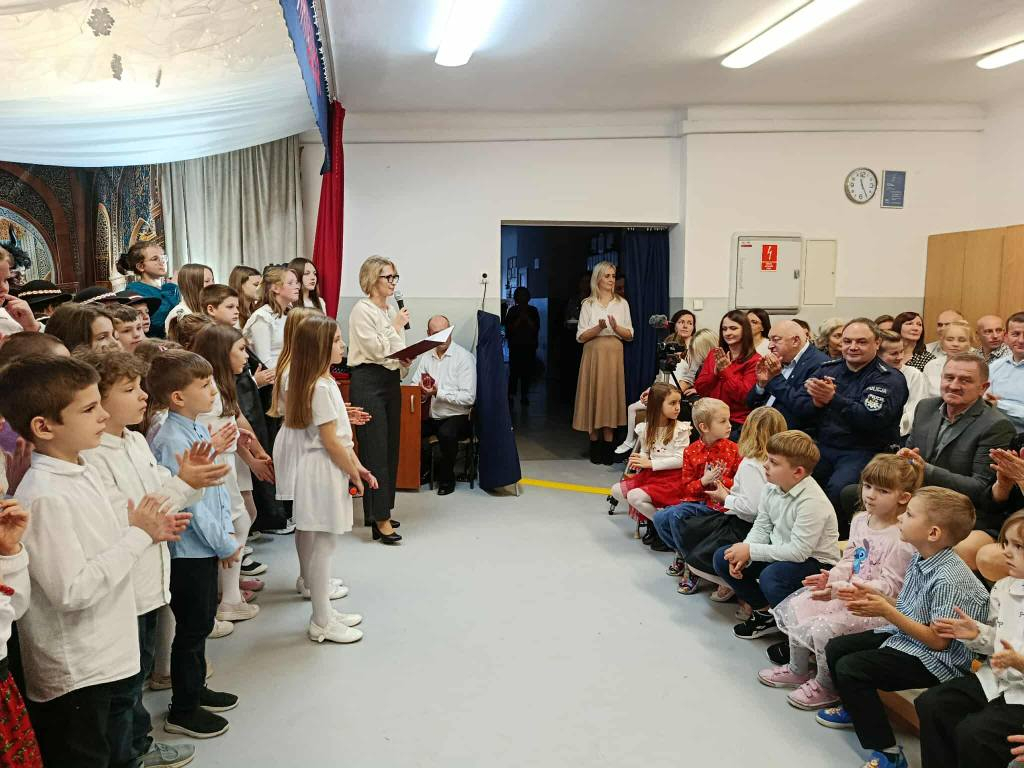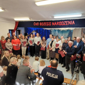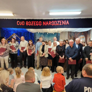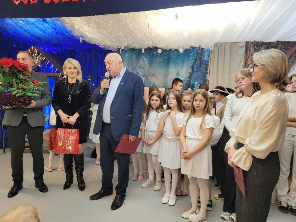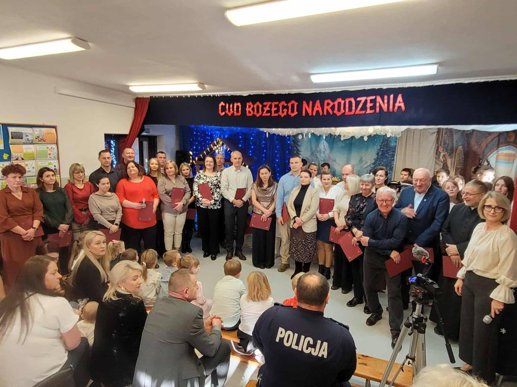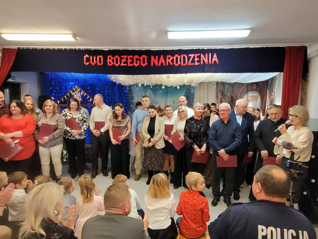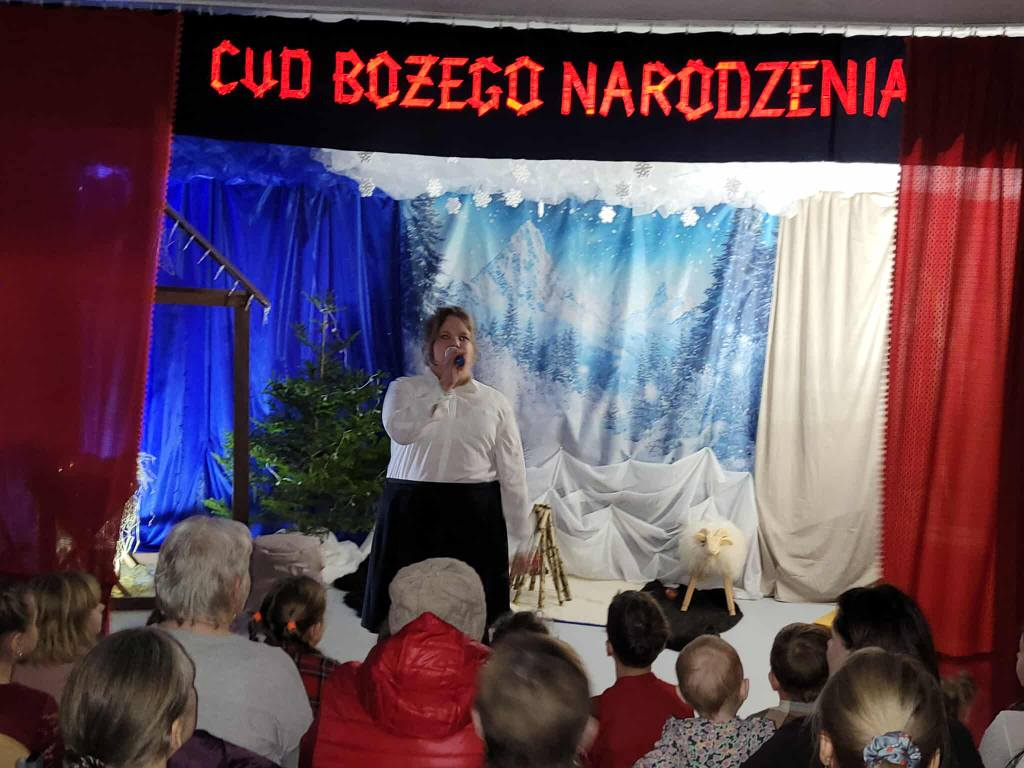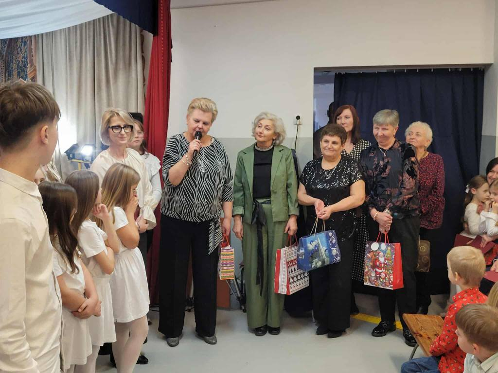 a uczniowie swym pięknym występem podbili serca publiczności. Niejednej osobie zakręciła się łza w oku... Piękne kolędy i pastorałki zaśpiewane przez chór i solistów przypomniały o tym, że Święta Bożego Narodzenia są już bardzo blisko. Występ był niezwykłym przeżyciem zarówno dla młodych aktorów, nauczycieli i zaproszonych gości. Po zakończonym spektaklu głos zabrała dyrektor szkoły Pani Joanna Gazda, która podziękowała uczniom za piękny występ oraz złożyła wszystkim świąteczne życzenia. Do życzeń dołączyli się włodarze naszej gminy oraz zaproszeni goście. Uczniowie otrzymali gromkie brawa oraz słodkie upominki. Te niezwykłe chwile na długo zostaną w naszej pamięci. Jasełka zostały wystawione nie tylko dla społeczności szkolnej, ale również w niedzielę - dla całej społeczności lokalnej. Na widowni licznie zgromadzili się dziadkowie, ciocie, wujkowie, rodzice oraz pozostali mieszkańcy, którzy z wielkim zainteresowaniem i wzruszeniem śledzili występ młodych artystów. Obecni byli także wszyscy nauczyciele, którzy wspierali swoich uczniów.