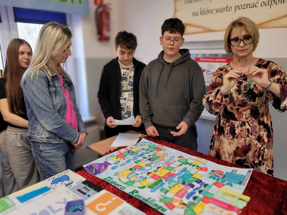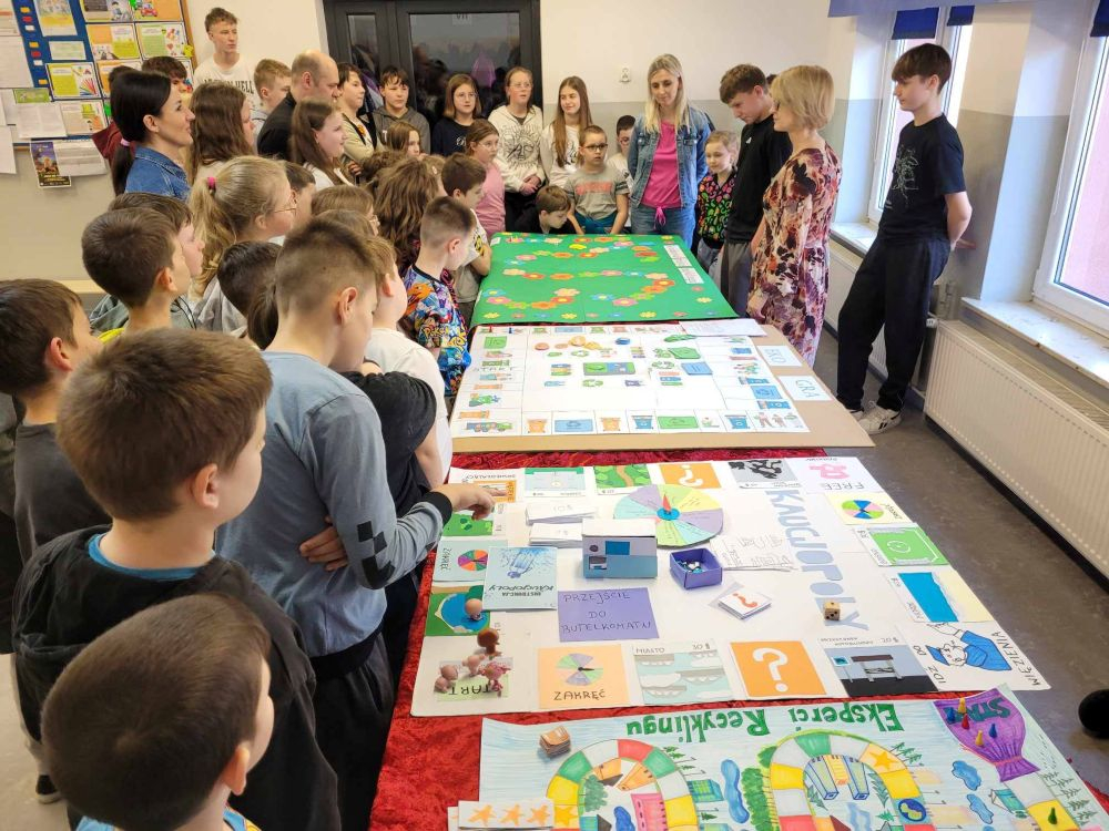 11.03.2026r. Nasza szkoła wzięła udział w XII edycji ogólnopolskiego konkursu ekologicznego ,, Mistrz recyklingu i przyjaciele"- Fundacji Chlorofil. Tego dnia zorganizowana została szkolna wystawa eko gier planszowych, przygotowanych przez cztery zespoły.