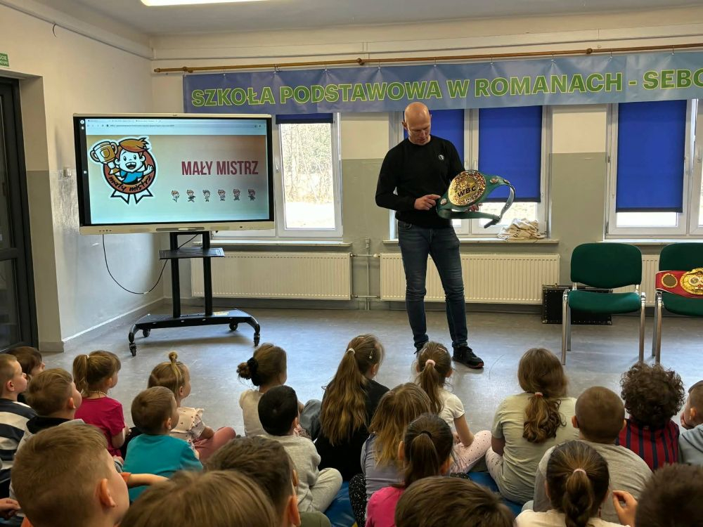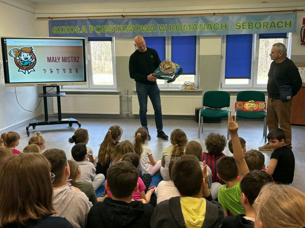 To była wyjątkowa lekcja – taka, która zostaje w pamięci na długo i budzi emocje jeszcze wiele dni później. W ramach programu „Mały Mistrz” naszą szkołę podstawową odwiedził niezwykły gość – Mistrz Świata federacji WBC, znakomity bokser Krzysztof „Diablo” Włodarczyk oraz jego asystent, Jan Dobrzyjałowski. Już od pierwszych chwil dało się wyczuć podekscytowanie, które unosiło się wśród uczniów niczym iskra przed wielkim wydarzeniem.