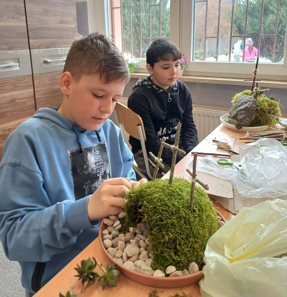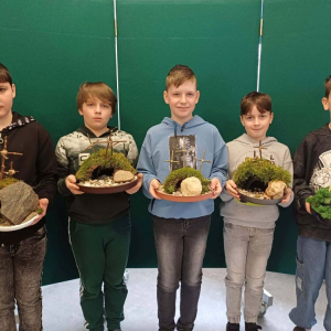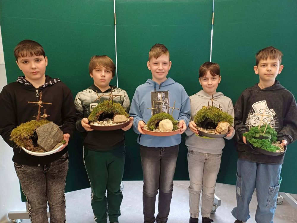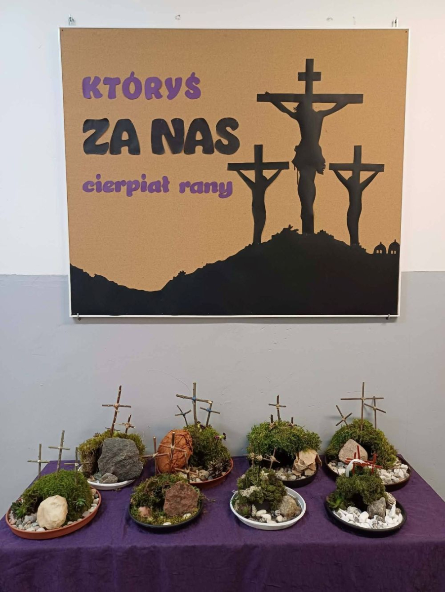 Jednym z elementów przygotowań był szkolny konkurs na najpiękniejszy grób Pana Jezusa. Uczniowie wykazali się dużą kreatywnością, starannością i zaangażowaniem, tworząc wyjątkowe i pełne głębokiej symboliki prace. Zwycięzcami konkursu zostali: