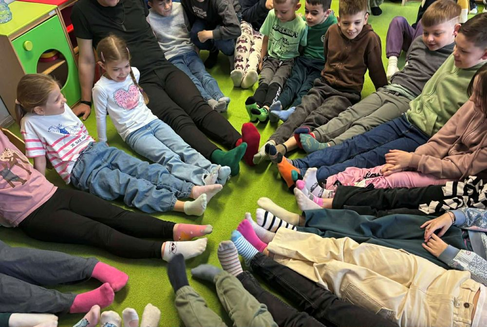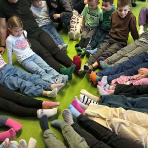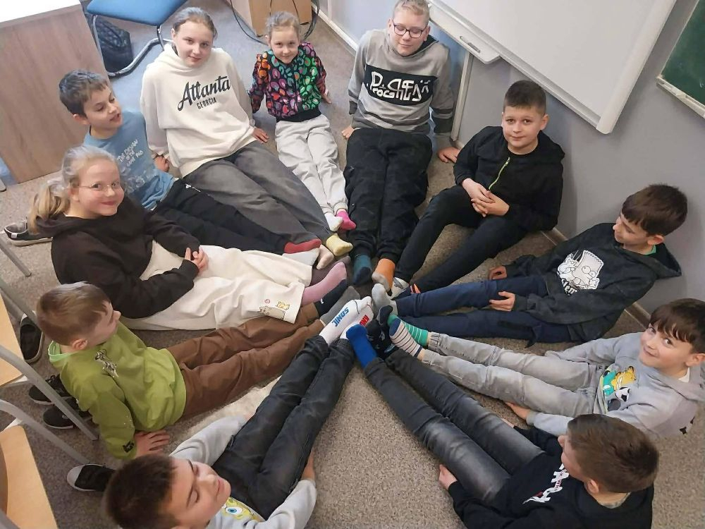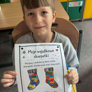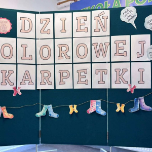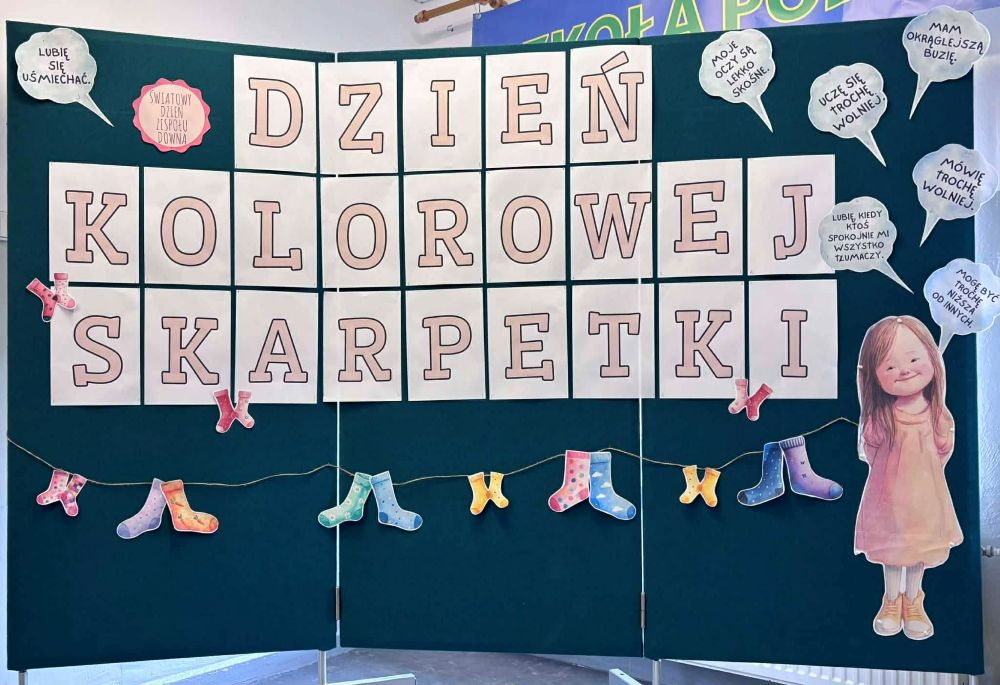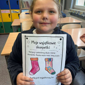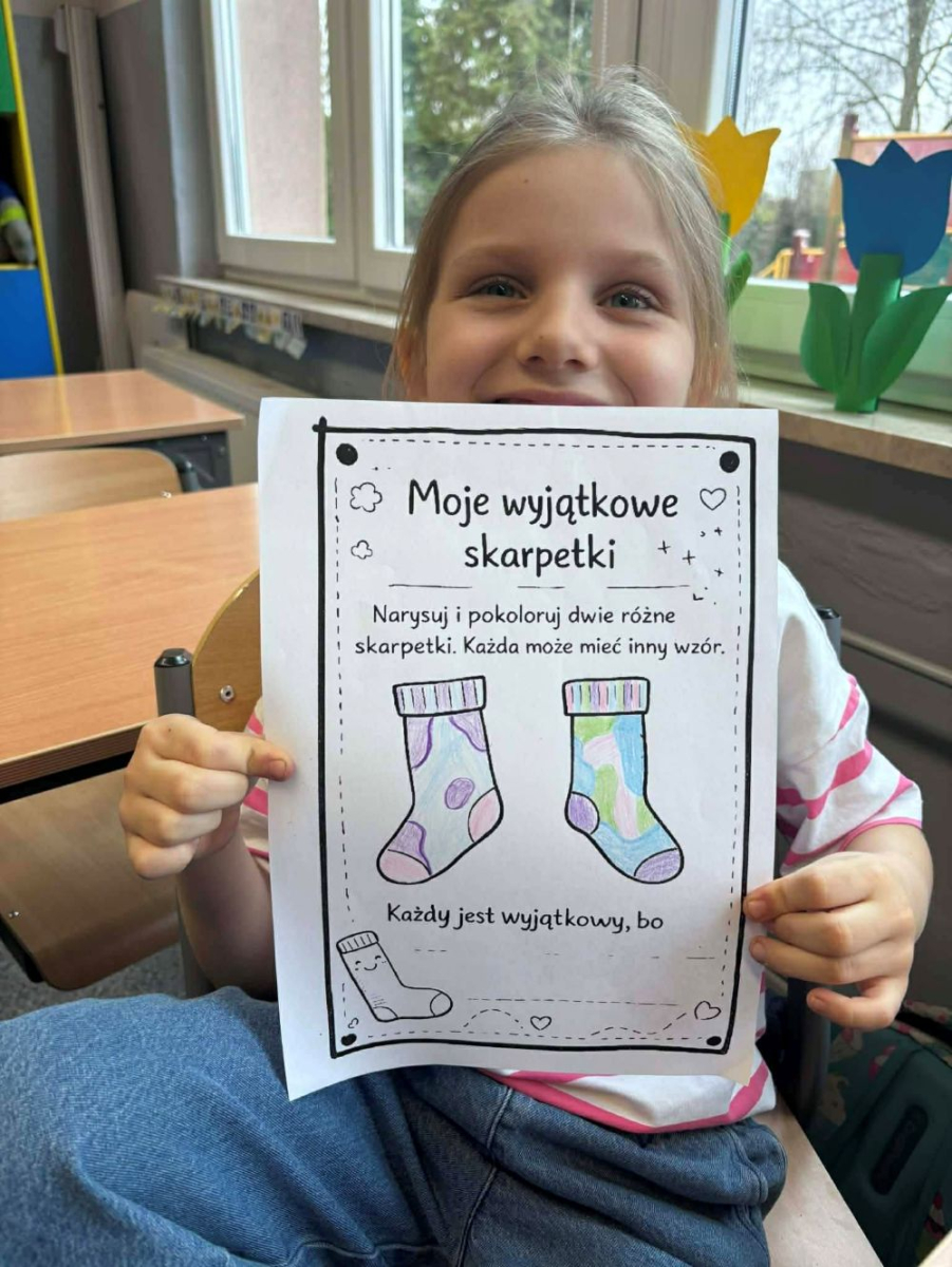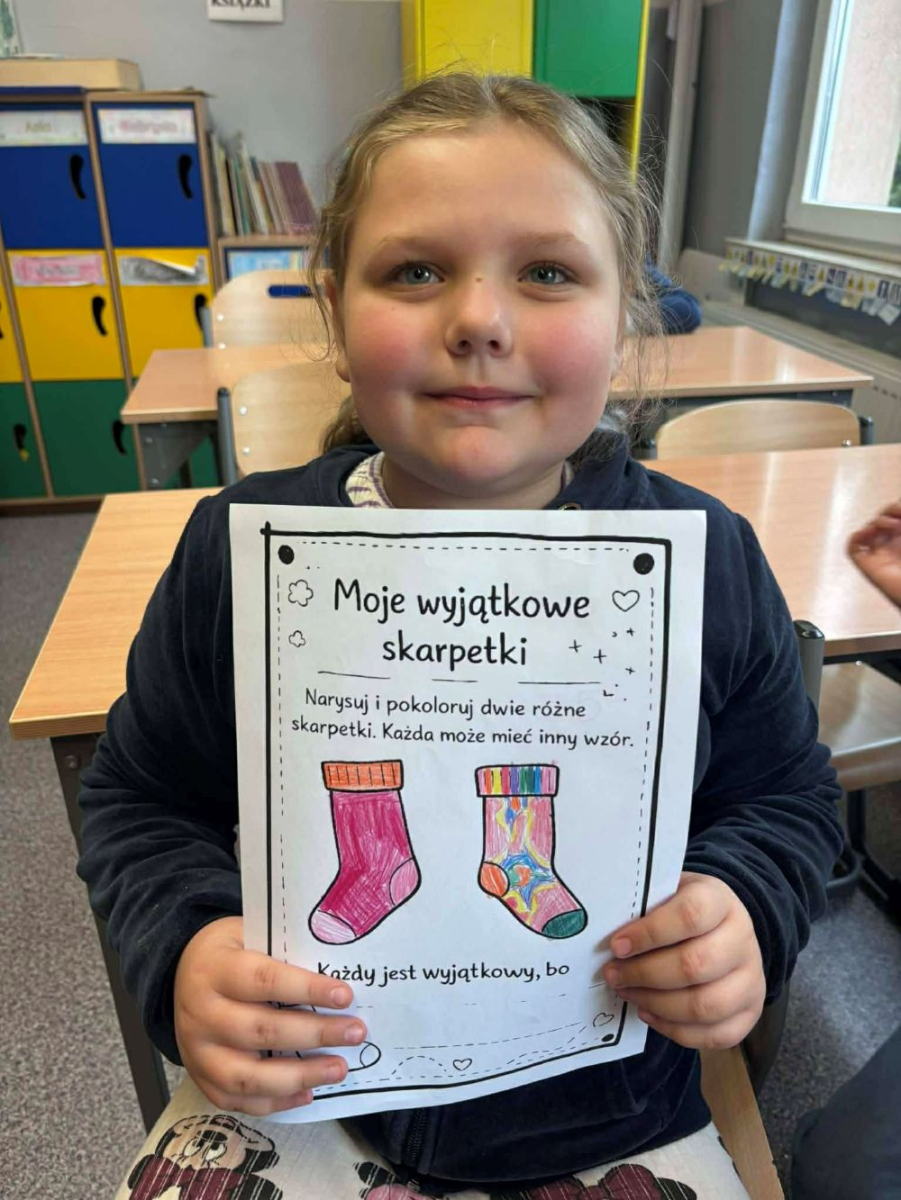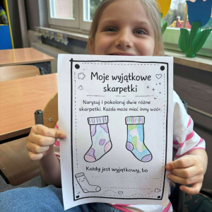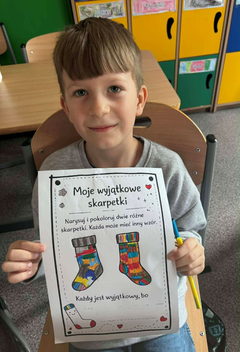 W geście solidarności cała społeczność szkolna założyła dwie różne skarpetki, będące symbolem wsparcia i różnorodności