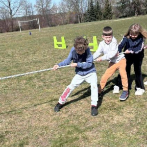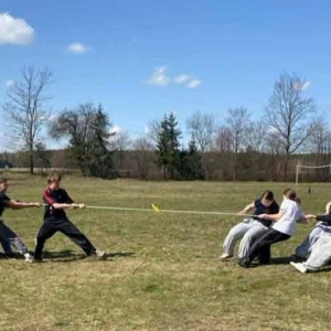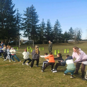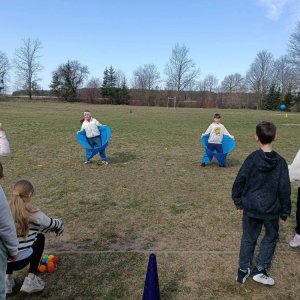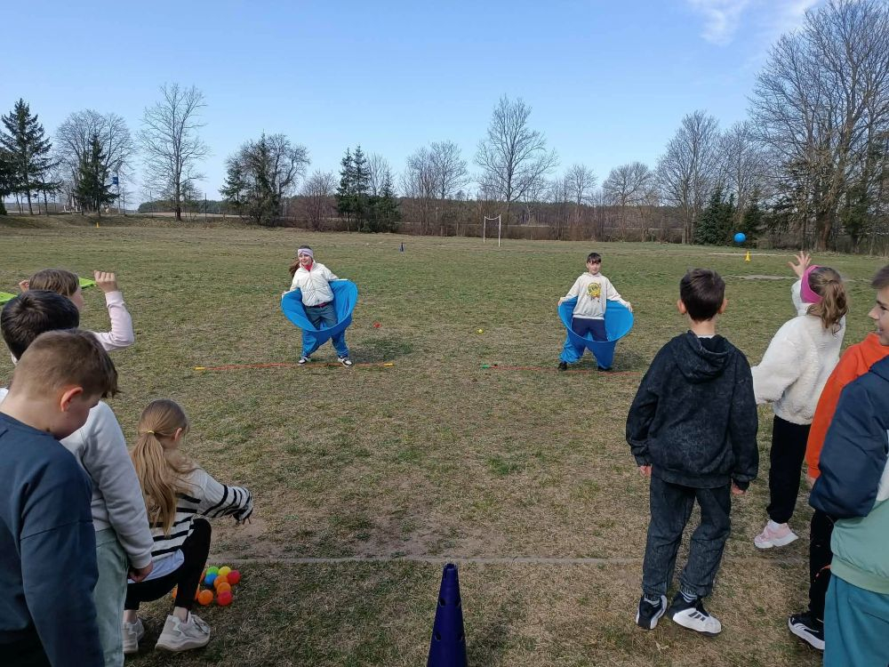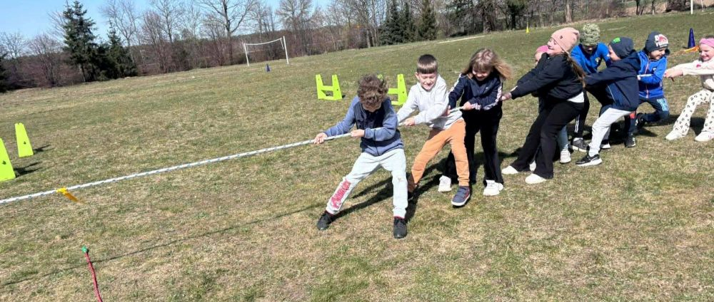 Uczniowie klas 0–8 z ogromnym zaangażowaniem brali udział w przygotowanych konkurencjach. Nie zabrakło emocjonujących sztafet, biegu przez płotki, torów przeszkód, rzutów do celu oraz przeciągania liny, które dostarczyły wielu niezapomnianych chwil i uśmiechów.