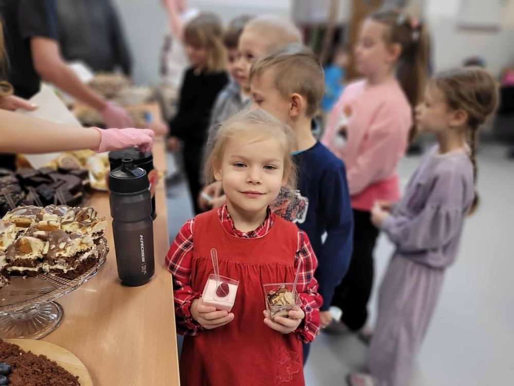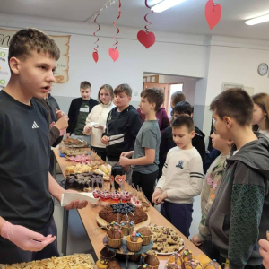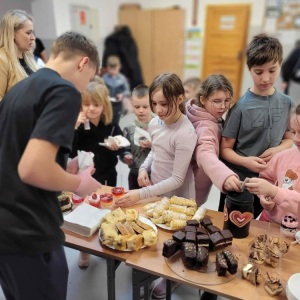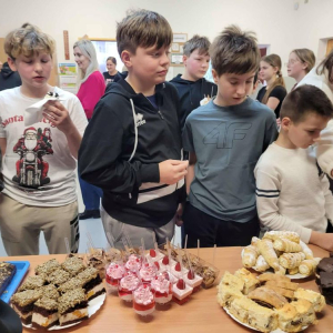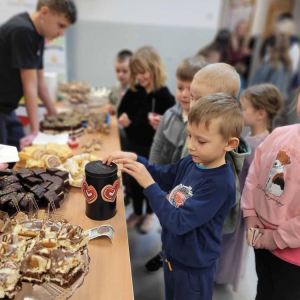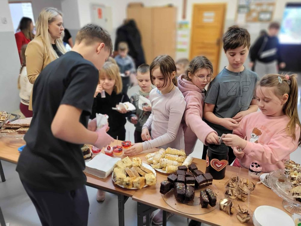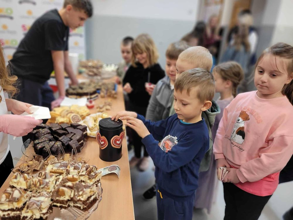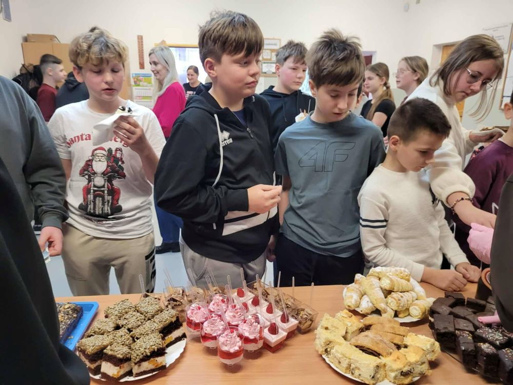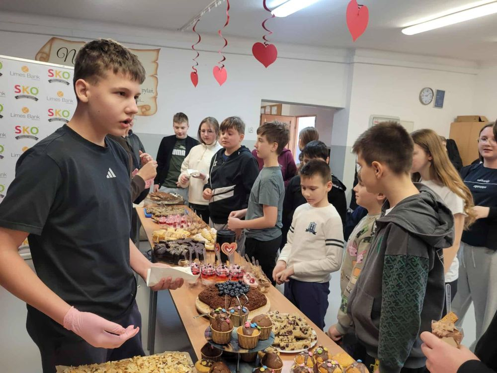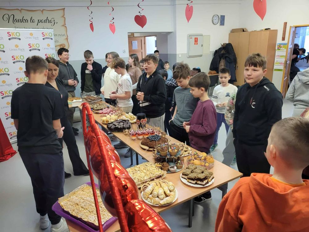 Cała społeczność uczniowska mogła kupić pyszne ciasta, ciasteczka, desery przygotowane przez nauczycieli i pracowników szkoły. Starsi członkowie naszego SKO Limes Bank Spółdzielczy zaangażowali się w obsługę, sprzedaż i liczenie zebranej kwoty.