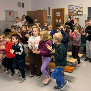 Na koniec naszego karnawałowego spotkania pan Tomasz wraz z panem Piotrem przeprowadzili muzyczny quiz na pięciolinii.